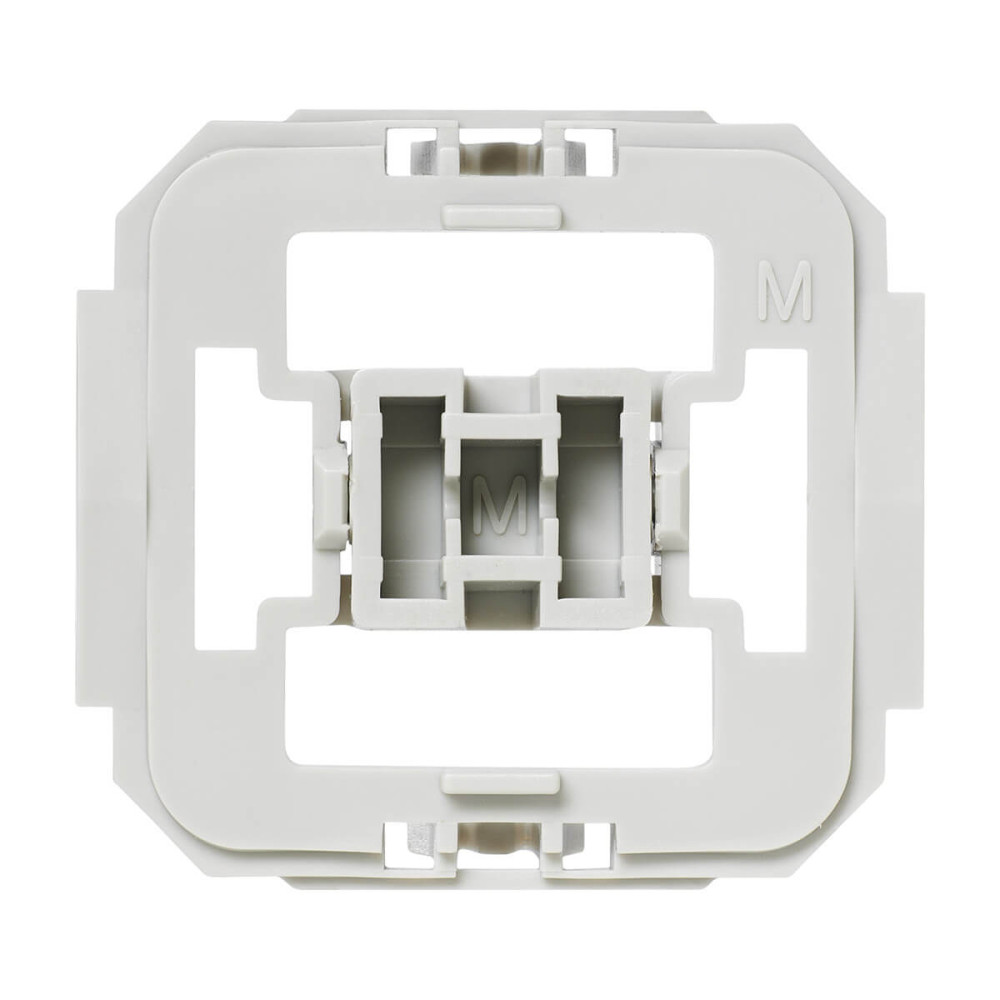 Dieser Adapter stellt die Schnittstelle zwischen dem Aktor und Ihrer vorhandenen Schalterserie dar. Er erfordert eine durchgehende Wippe, die es für alle Schalterserien Programme gibt.