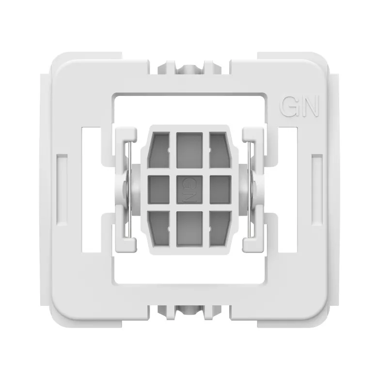 Dieser Adapter stellt die Schnittstelle zwischen dem Aktor und Ihrer vorhandenen Schalterserie dar. Er erfordert eine durchgehende Wippe, die es für alle Schalterserien Programme gibt.